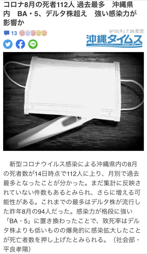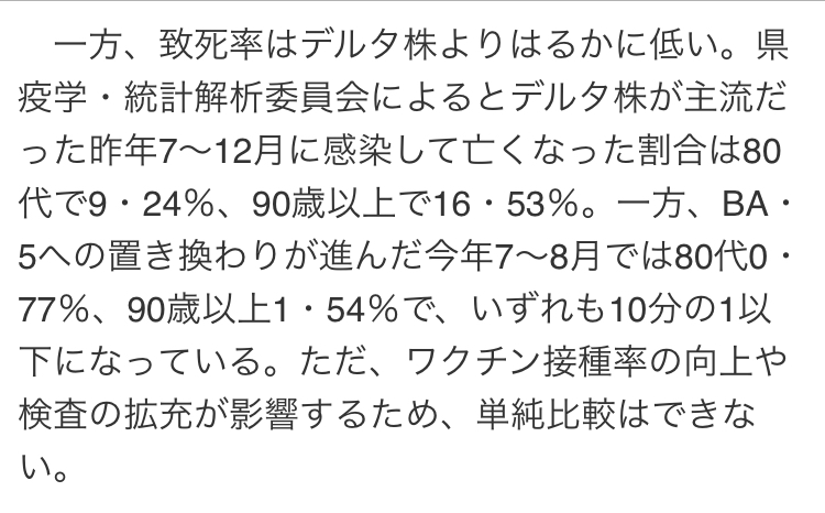 デルタとオミクロンは単純比較できない。8月の死亡者数が112人