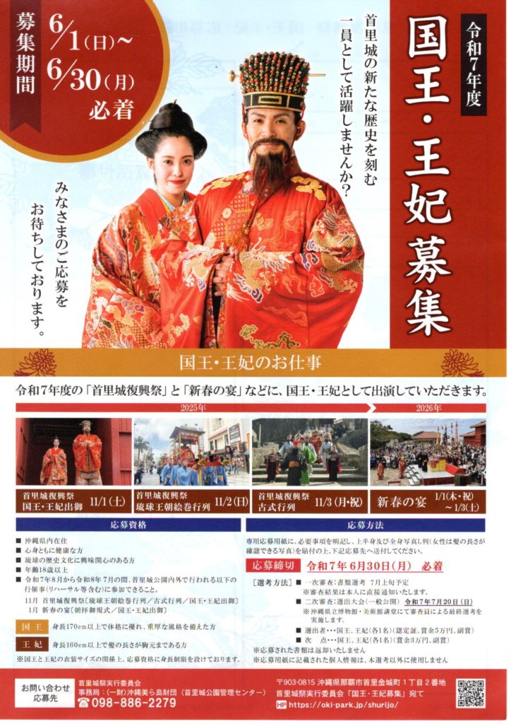 令和7年度の「首里城復興祭」国王・王妃募集!