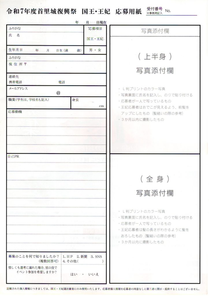 令和7年度首里城復興祭国王・王妃応募用紙!