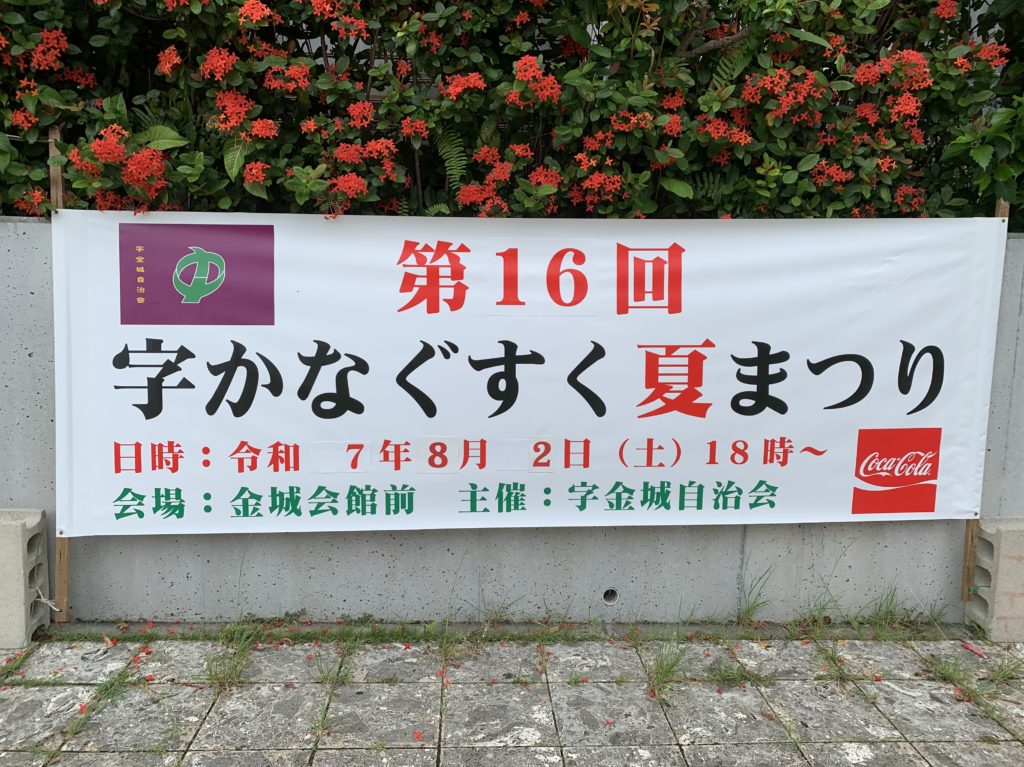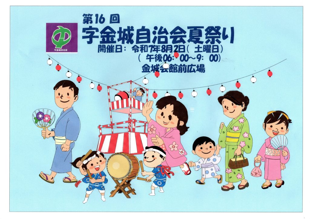 令和7年度7月26日(土)に開催を予定しておりました、「第16回字かなぐすく夏祭り」は、台風8号の接近により、安全面を考慮し、8月2日(土)に延期することとなりました。