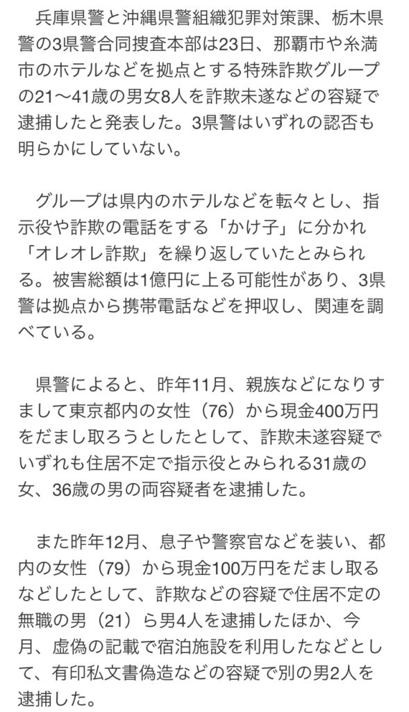 沖縄でも特殊詐欺事件はあります‼️皆さん気をつけてください。防犯意識を高めましょう‼️